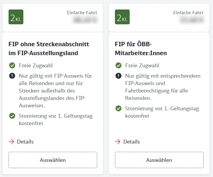 For cross-border journeys, either a continuous FIP 50 Ticket or FIP Coupons from both operators in the two countries must be available. For journeys with different operators within Poland, either a continuous FIP 50 Ticket or FIP Coupons from both operators must be available.